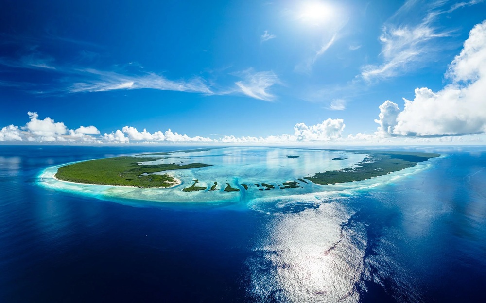Caroline Atoll, en Kiribati, es un atolón remoto con arrecifes vibrantes de 300 especies de corales y 1,200 peces, donde lagunas poco profundas brillan con colores pastel. Su aislamiento (6 m sobre el mar) lo hace un paraíso frágil.