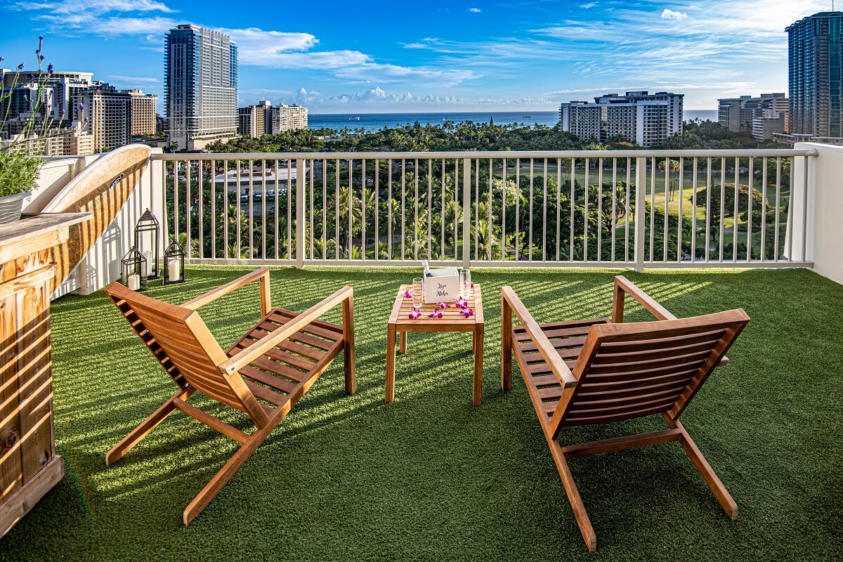 La mayoría de las habitaciones mejoradas ofrecen vistas a Diamond Head y/o al océano y los siguientes servicios GRATUITOS: Acceso WiFi a Internet en todo el hotel y mininevera.